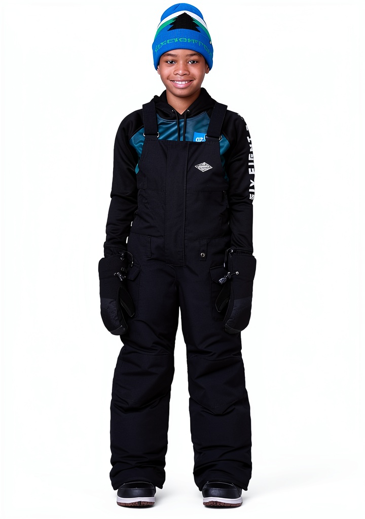 This insulated bib is ideal for boys engaging in winter sports such as skiing, snowboarding, or sledding, as well as general outdoor activities in cold conditions. Its weather-resistant properties make it suitable for snowy or windy environments, protecting against moisture and chill while allowing freedom of movement. The target audience includes boys who need reliable gear for school outings, family trips to the slopes, or daily adventures in inclement weather. The design supports active play, with features like boot gaiters to keep snow out and an audio outlet for convenience during use.