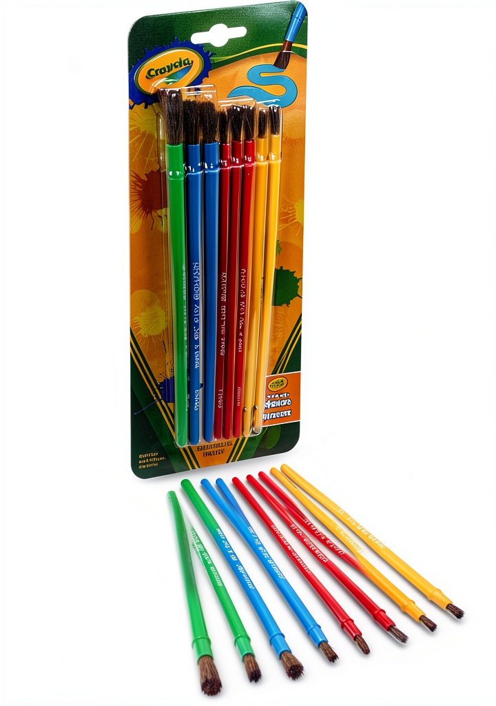 These paint brushes are perfect for school projects, home arts and crafts, and creative play. They are suitable for children aged 4 years and older, providing a safe and enjoyable painting experience. Use them with Crayola watercolors, acrylics, or tempera paints to achieve smooth, even coverage on paper, canvas, or other art surfaces. Ideal for classrooms, playrooms, and family activities, these brushes help develop fine motor skills and artistic expression in young artists.