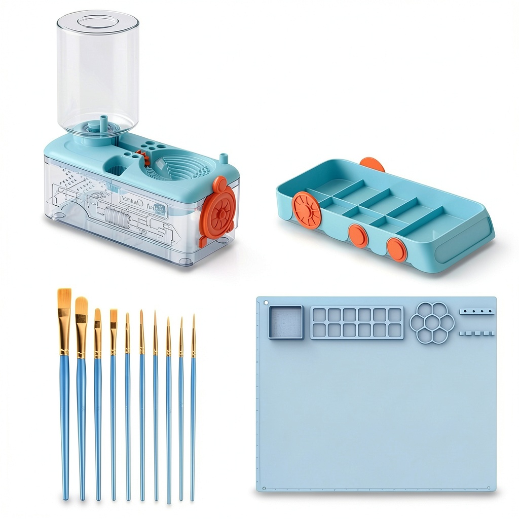 This paint brush cleaner is ideal for home art projects, school classrooms, and creative play sessions for children aged 5 to 12. It supports messy activities like painting with watercolors or acrylics, allowing kids to explore creativity without worrying about cleanup. The non-slip base and easy-wipe materials make it suitable for various surfaces, including desks and floors, during birthdays, holidays, or daily art practice. Parents and educators can use it to instill responsibility and organization in young artists, fostering a love for art in a controlled environment.