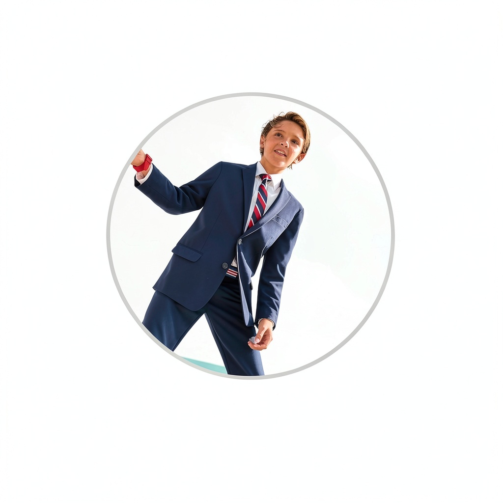 The IZOD Boys’ Bi-Stretch Blazer Jacket is a sophisticated single-breasted suit jacket designed for comfort and style. Crafted from flexible bi-stretch fabric, it features a 2-button closure, top welt pocket, contrast blue piping, flap pockets, and an interior functional pocket. Available in sizes 8 to 20 and colors like Sharkskin Light Grey, Navy Performance, Bank Blue, Silverware, Khaki Performance, and Black, this blazer ensures a true-to-size fit with soft, breathable materials and elegant details such as 3-button sleeve cuffs and lining.