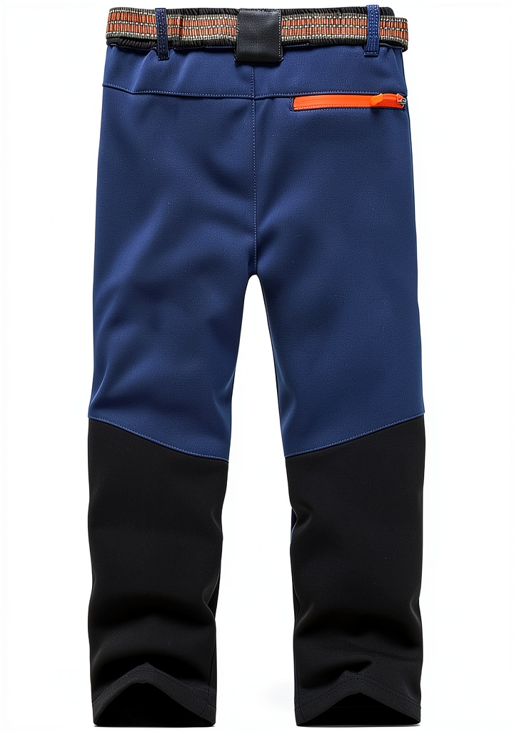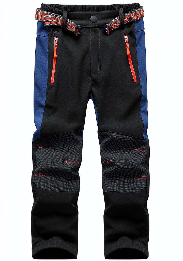 These kids’ waterproof and windproof pants are crafted from high-quality materials to provide reliable protection against rain and wind, ensuring children stay dry and comfortable during outdoor activities. The fake placket design eliminates the hassle of real zippers, making them easy to put on and take off while maintaining a neat appearance. Reinforced knee and leg areas enhance durability, resisting wear and tear from active play. With multiple zipper pockets for convenient storage and an elastic waistband with an adjustable belt for a snug fit, these pants are versatile for various body shapes. Model number KZ3089, they are available in Black-blue color and sizes ranging from 6-7 Years to 14-16Y, designed for unisex use and backed by a product warranty.