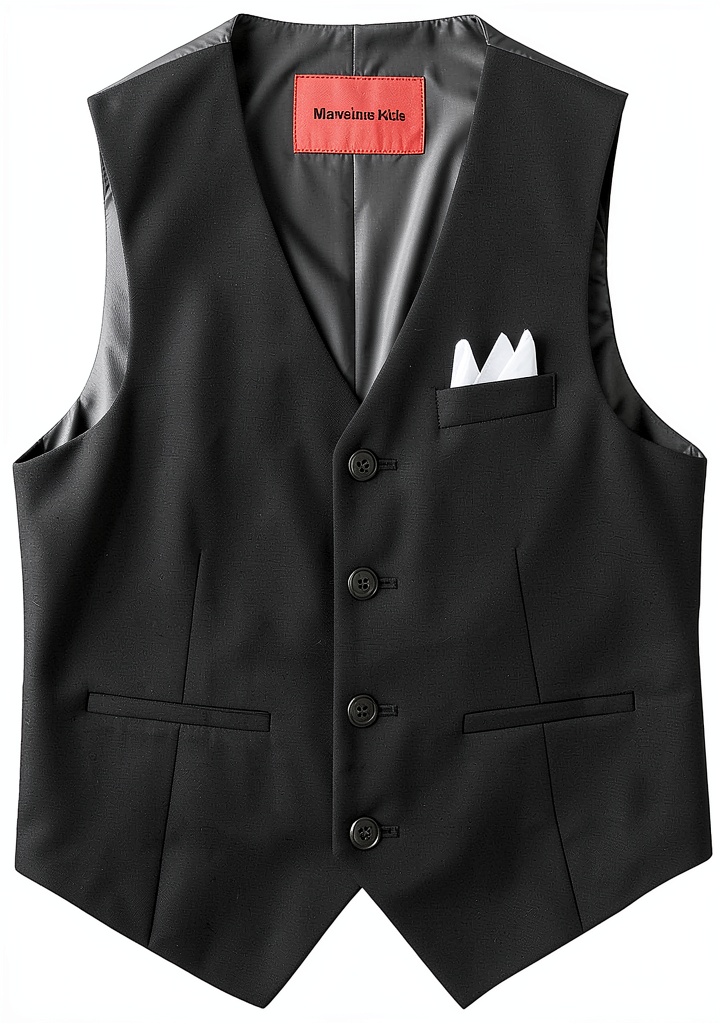 The Marvelous Kids Boys’ 4-Piece V-Neck Vest Set is a comprehensive formal ensemble designed for young boys, featuring a fully lined vest, dress pants, dress shirt, necktie, pocket square, and bow tie. The vest includes a 4-button styling with two lower pockets, crafted from high-quality, smooth fabrics that are colorful and durable. This slim-fit suit is purely handmade, blending traditional craftsmanship with modern aesthetics for a sharp, tailored appearance. Specifications include a range of sizes from 2 to 20 and colors like Blue Gray, Black, Dark Blue, Light Gray, Burgundy, Royal Blue, and Beige, with prices starting at $35.99. The set is ideal for enhancing a child’s posture and confidence, with accurate sizing based on a detailed chart to ensure a perfect fit.